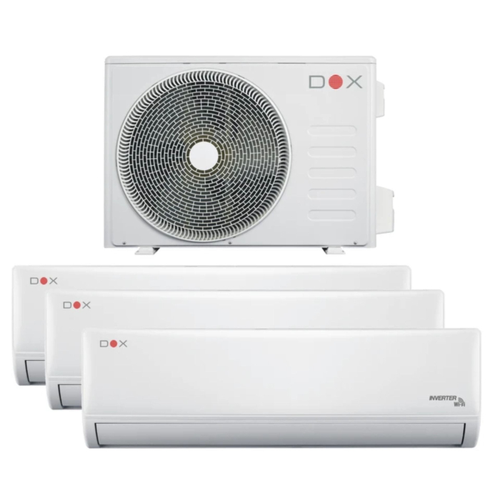 Aparat de aer conditionat inverter tip split, in pompa de caldura Radox, Dox este un sistem multisplit de aer conditionat alcatuit dintr-o unitate exterioara si 2 unitati interioare.
