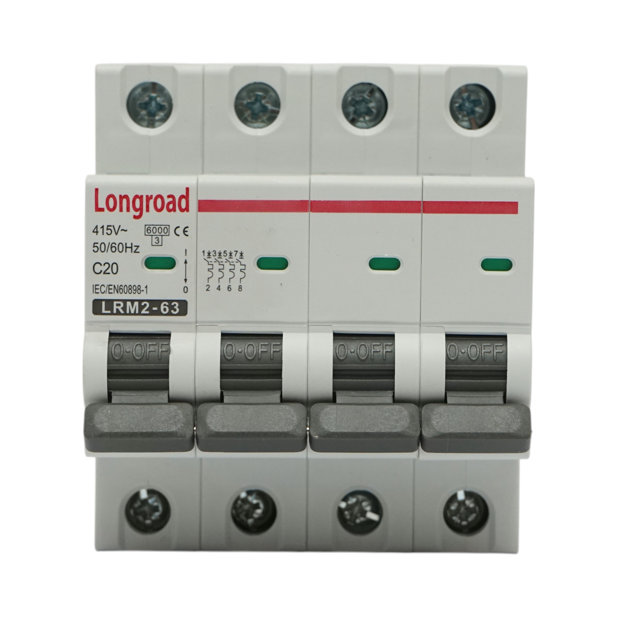 Modelul BK77765 este varianta de 20A din familia 4P Longroad. Prin aceasta configuratie, produsul poate fi integrat in aplicatii unde proiectul cere protectie trifazata la 20A, la 415 VAC.