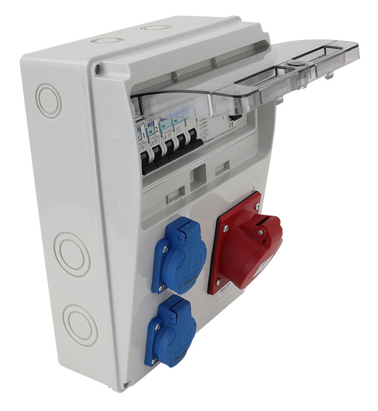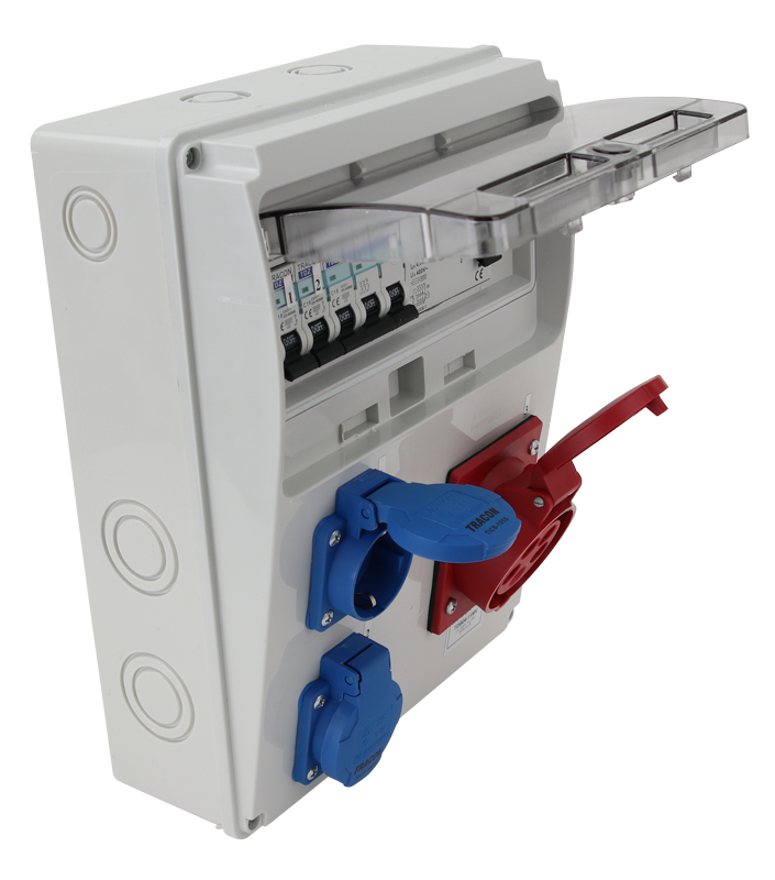 Catalog Cutie de distributie cu protectie RCCB + MCB, 2×SCHUKO + 1×16A (3P+N+E), 400V - Tracon TDB04-11MV