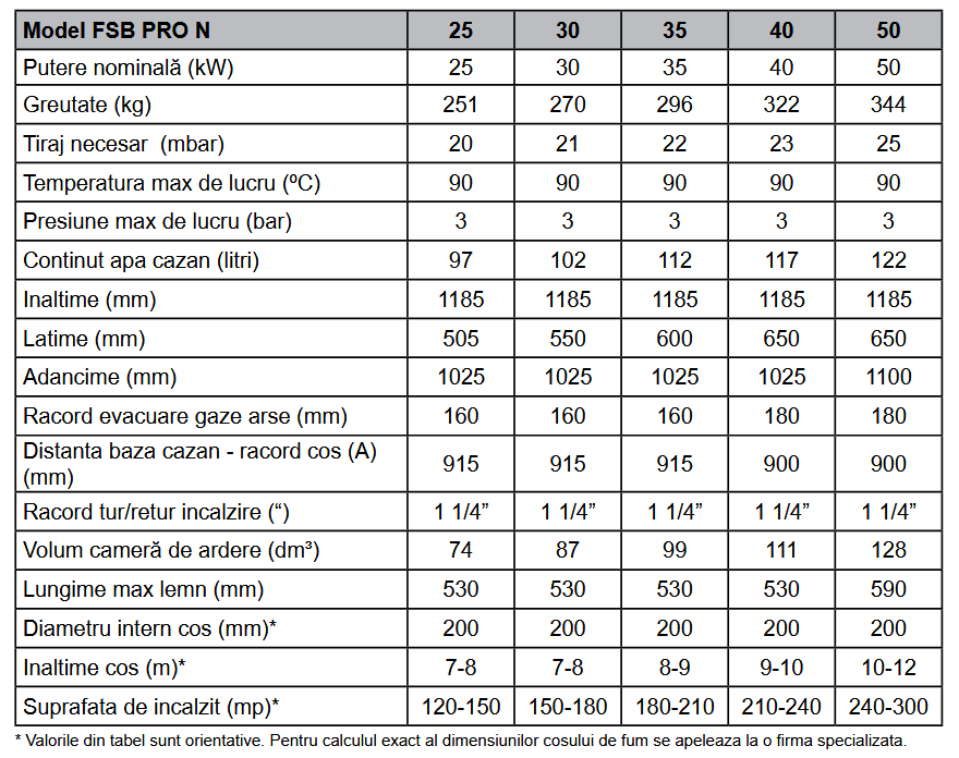 FSB PRO N sunt cazane din otel avand o construcție eficientă cu 3 drumuri de fum pentru funcționare cu lemn cu puterea calorifică mai mare de 15 MJ/kg.