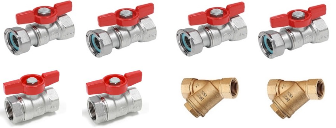 Robinetii de 3/4" se monteaza pe circuitul de incalzire. Filtrul de apa cu sita Y 3/4" se foloseste pentru protectia pompei de circulatie din centrala termica si se monteaza pe returul instalatiei de incalzire.