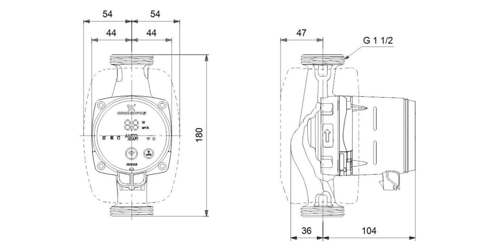 Motorul este un motor sincron cu magnet permanent caracterizat printr-o eficiență ridicată. Turația pompei este controlată de un convertor de frecvență integrat încorporat în cutia de comandă.