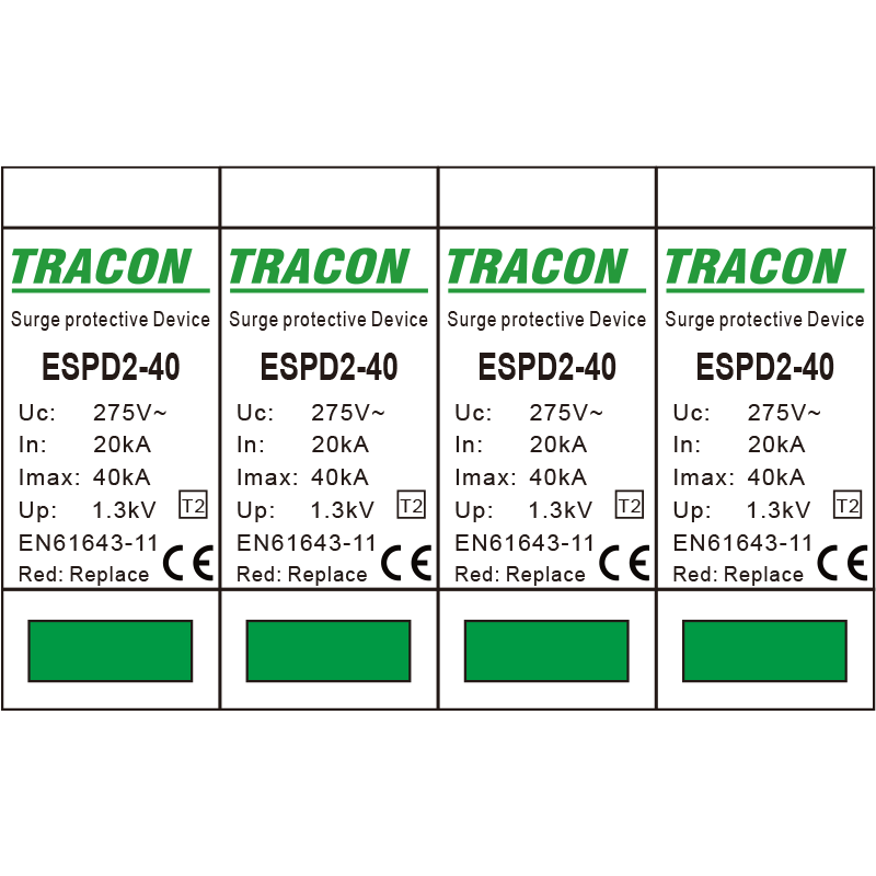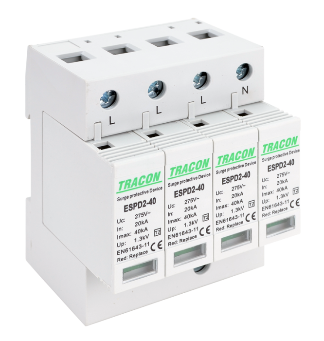 Catalog Descarcator de supratensiune T2 AC, element modular inlocuibil 4P 40kA 400V - Tracon ESPD2-40-4P