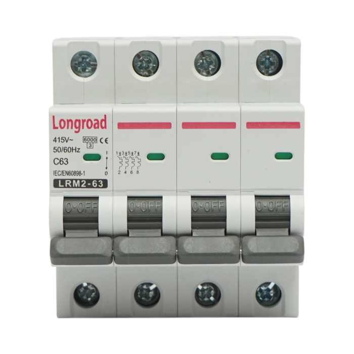 Siguranta automata tip intrerupator 3P+N Longroad, curent nominal 63A si tensiune 415VAC, destinata protectiei circuitelor trifazate impotriva suprasarcinii si scurtcircuitului in instalatii electrice.
