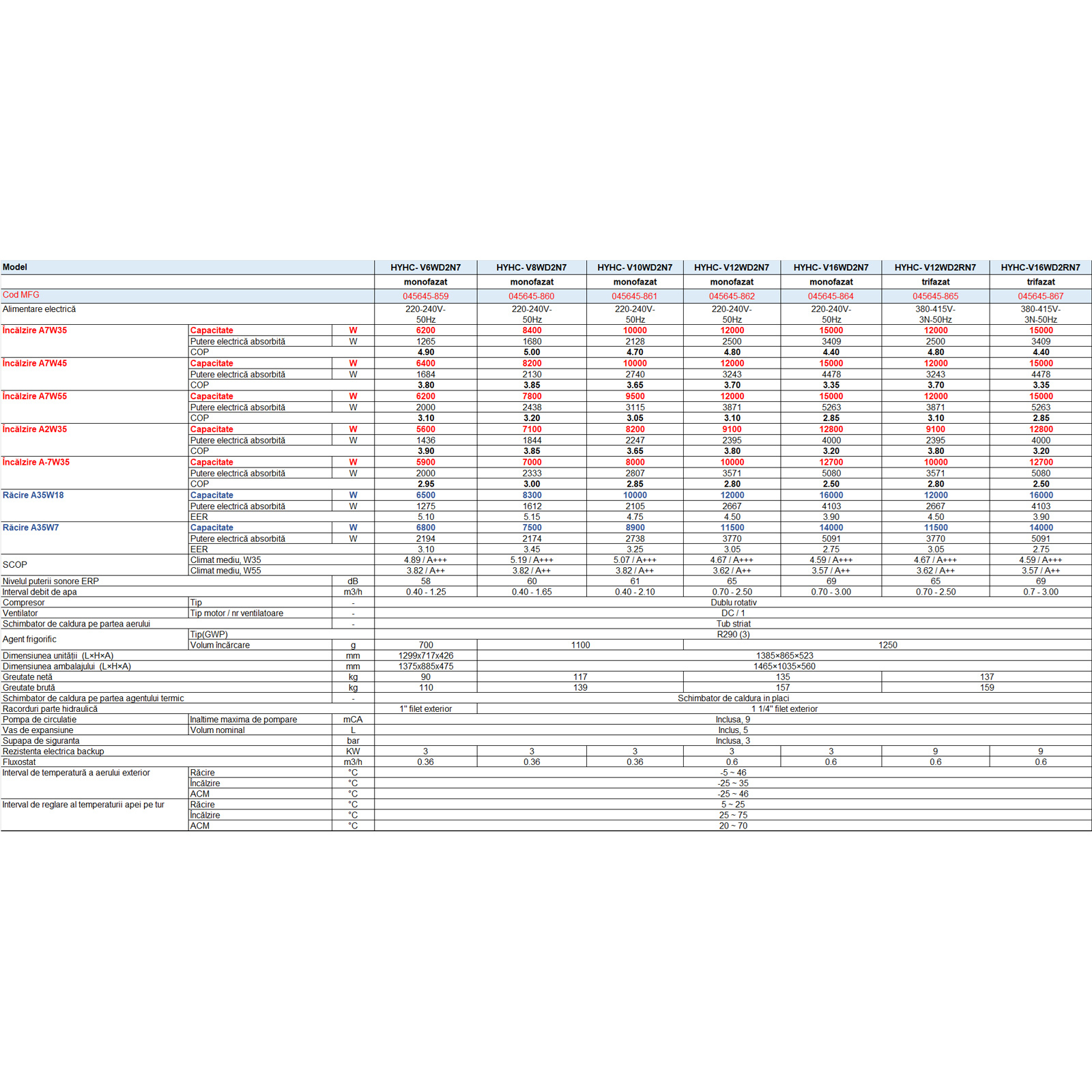 | Model | HYHC-V12WD2RN7 | HYHC-V16WD2RN7 | HYHC-V26WD2RN7 | HYHC-V30WD2RN7 | HYHC-V35WD2RN7 |