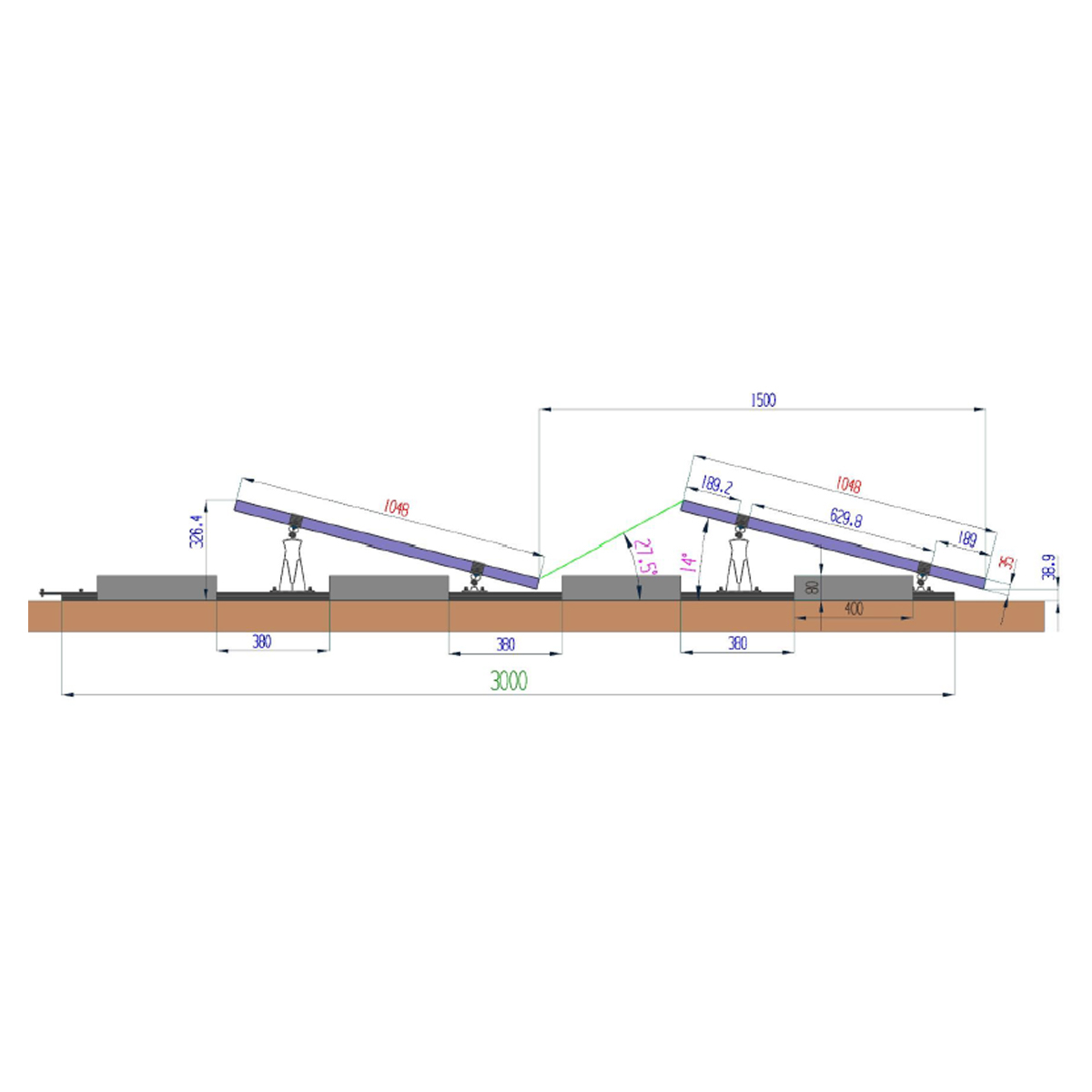 Este o soluție potrivită pentru proiecte unde panourile trebuie instalate pe terasă, într-o configurație fixă, cu orientare sud și un unghi de 10°.
